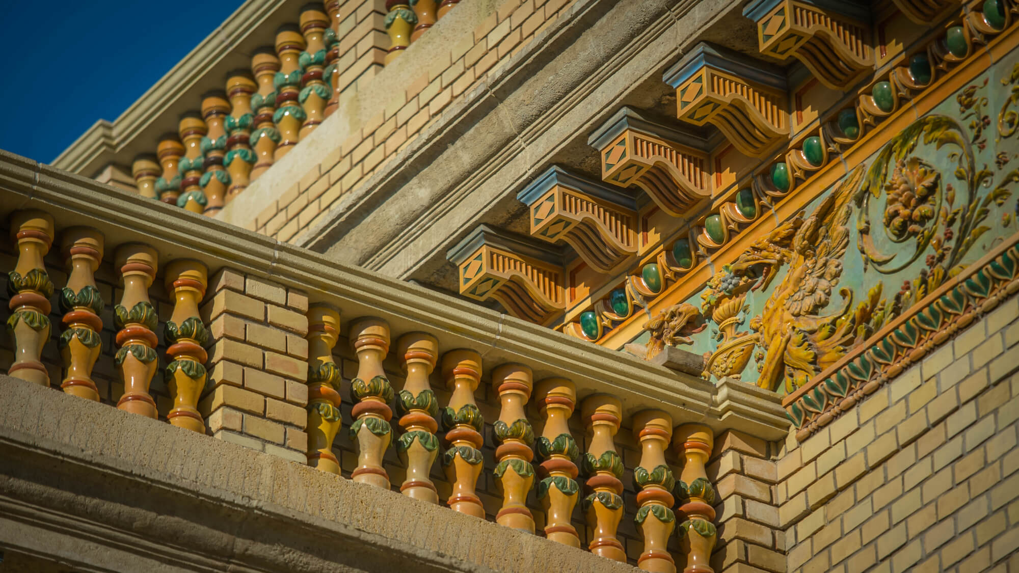 This building was the one that brought success to the Zsolnay factory in Budapest. This was the first time they designed and manufactured ceramics to decorate a building, which was still a novelty in Budapest at the time. The building, designed by Ferenc Pfaff, was constructed for the National General Exhibition in 1885 as an art hall. Contemporary critics praised it as one of the most beautiful features of the exhibition, thanks to the unique and colourful Zsolnay decorations.