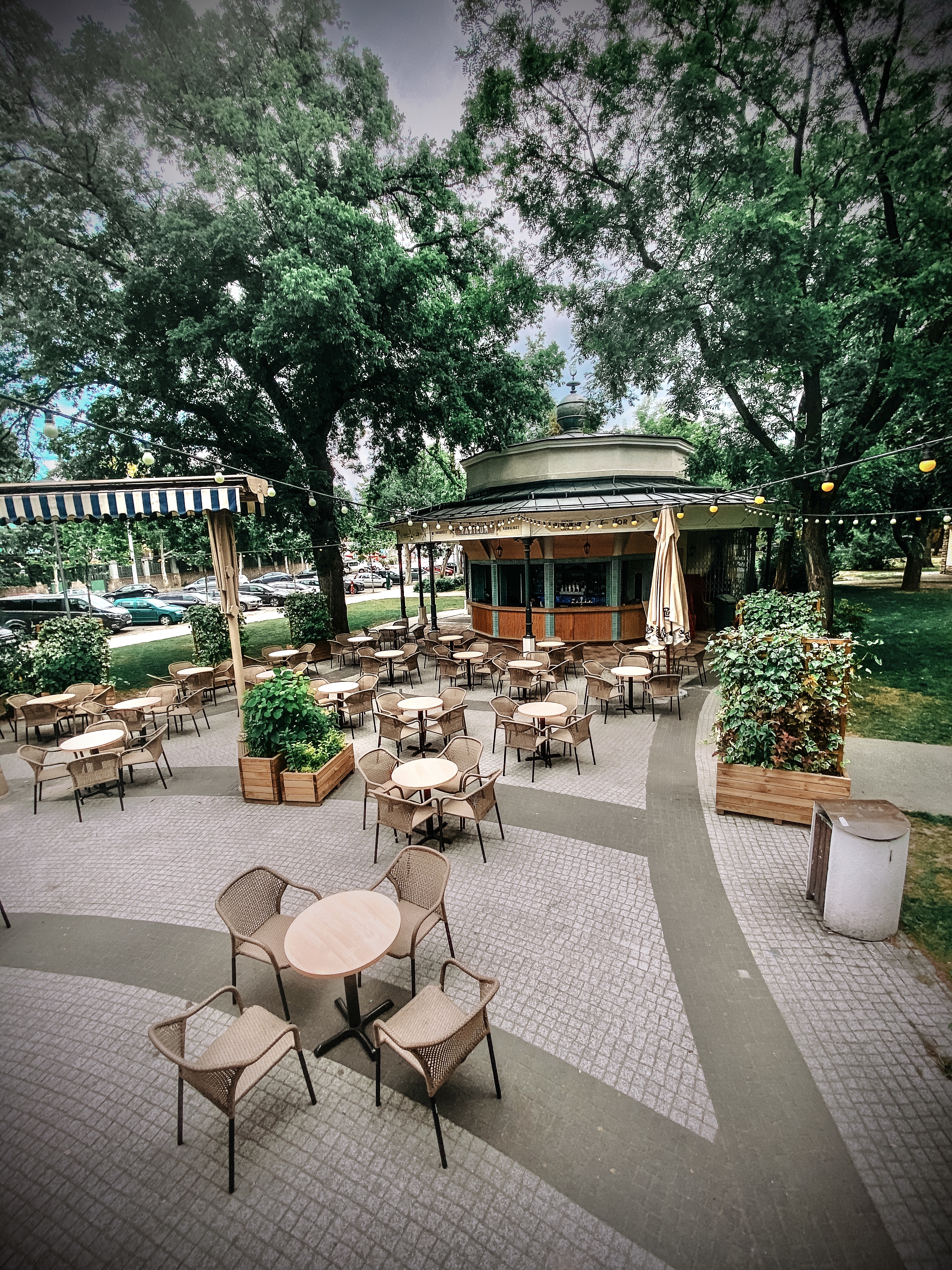 A Városliget legforgalmasabb részét évtizedekig csúfították a silány árukínálattal rendelkező lepusztult bódék. A Liget Projektnek köszönhetően alapjaiban újult meg ez a terület: elbontották az elavult bódésort, s új, a Liget hagyományaihoz illeszkedő pavilonok kaptak itt helyet. Az új létesítményeket Feszl Frigyesnek, a pesti Vigadó tervezőjének 1860-as keltezésű, orientalista stílusú városligeti pavilonterve alapján építettük meg, a belső tereket pedig a jelenkori elvárásoknak megfelelően alakították ki. A pavilonok a parkhoz illeszkedő formában nyújtanak színvonalas kulturális-gasztronómiai-kereskedelmi kínálatot a Liget látogatói számára. Az épületek között tágas teraszt alakítottunk ki, mely népszerű közösségi térként várja a vendégeket.